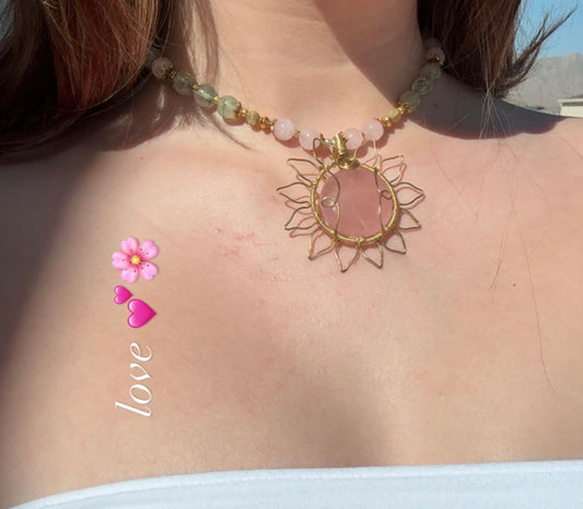 Custom Slots: 2 available! Rose Quartz + Prehnite flower necklace 🌸