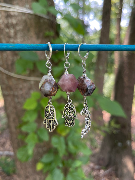 Madagascar Rose Quartz Hamsa Hand Hair Charm