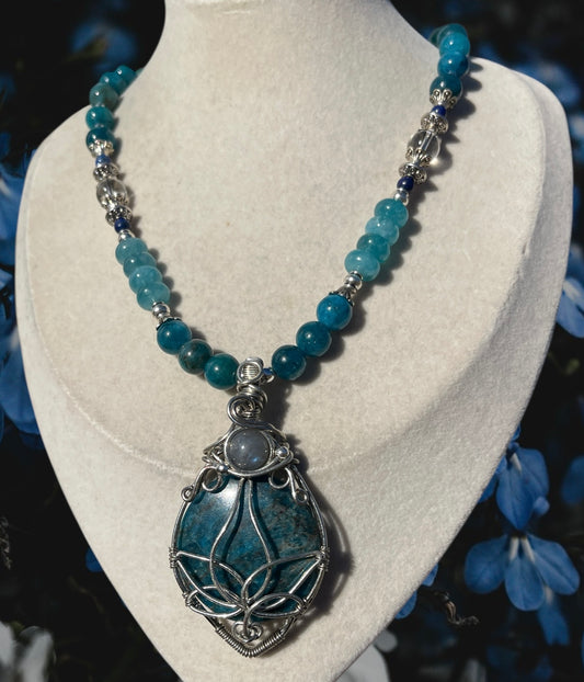 Blue Apatite + Labradorite Lotus Flower Necklace