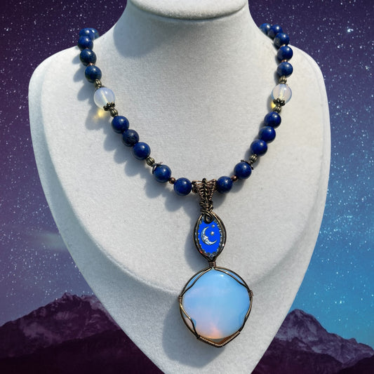 Cosmica • Opalite + Lapis Lazuli Crescent Moon Necklace