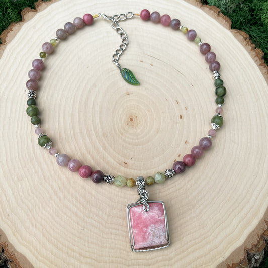 Haim • AA Rhodochrosite, Madagascar Rose Quartz, Prehnite + Jade Necklace