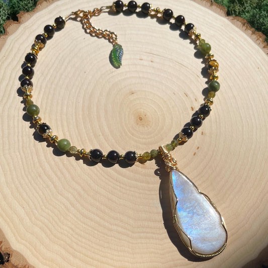 Julia • AAA Moonstone, Star Garnet, Jade + Green Garnet Necklace