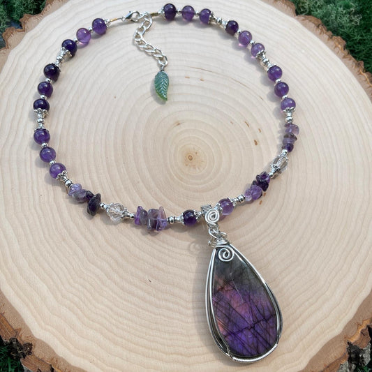 Interstellar • Purple Labradorite + Amethyst Necklace