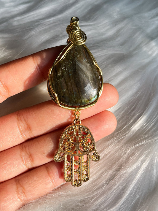 XL Ammonite Fossil & Amethyst Pendant (Rare)