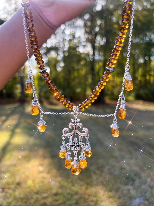 The Sunshine Alchemy Set • Brazilian Citrine Chandelier Necklace + Earrings