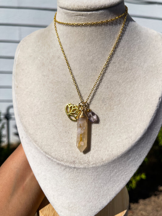 SELF-GROWTH • Flower Agate Affirmation Charm Necklace