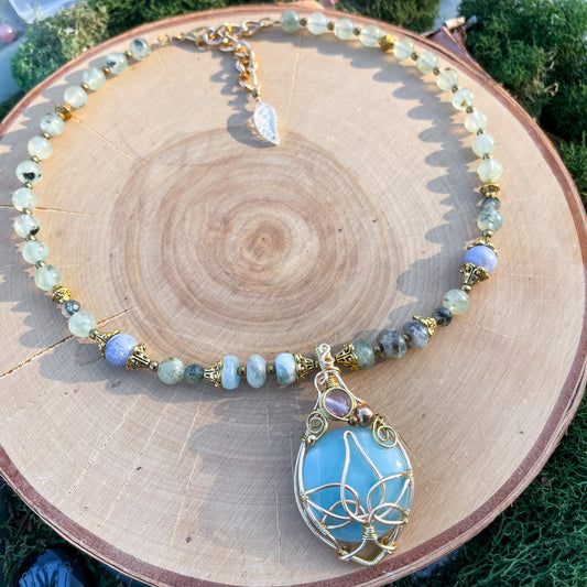 Lucky Aura • Amazonite & Opalite Lotus Flower Necklace