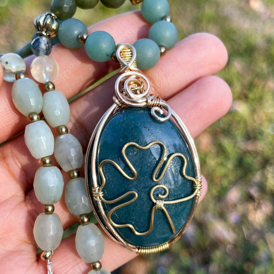555 Clover • Moss Agate + Aventurine 4 Leaf Clover Necklace Stack 🍀