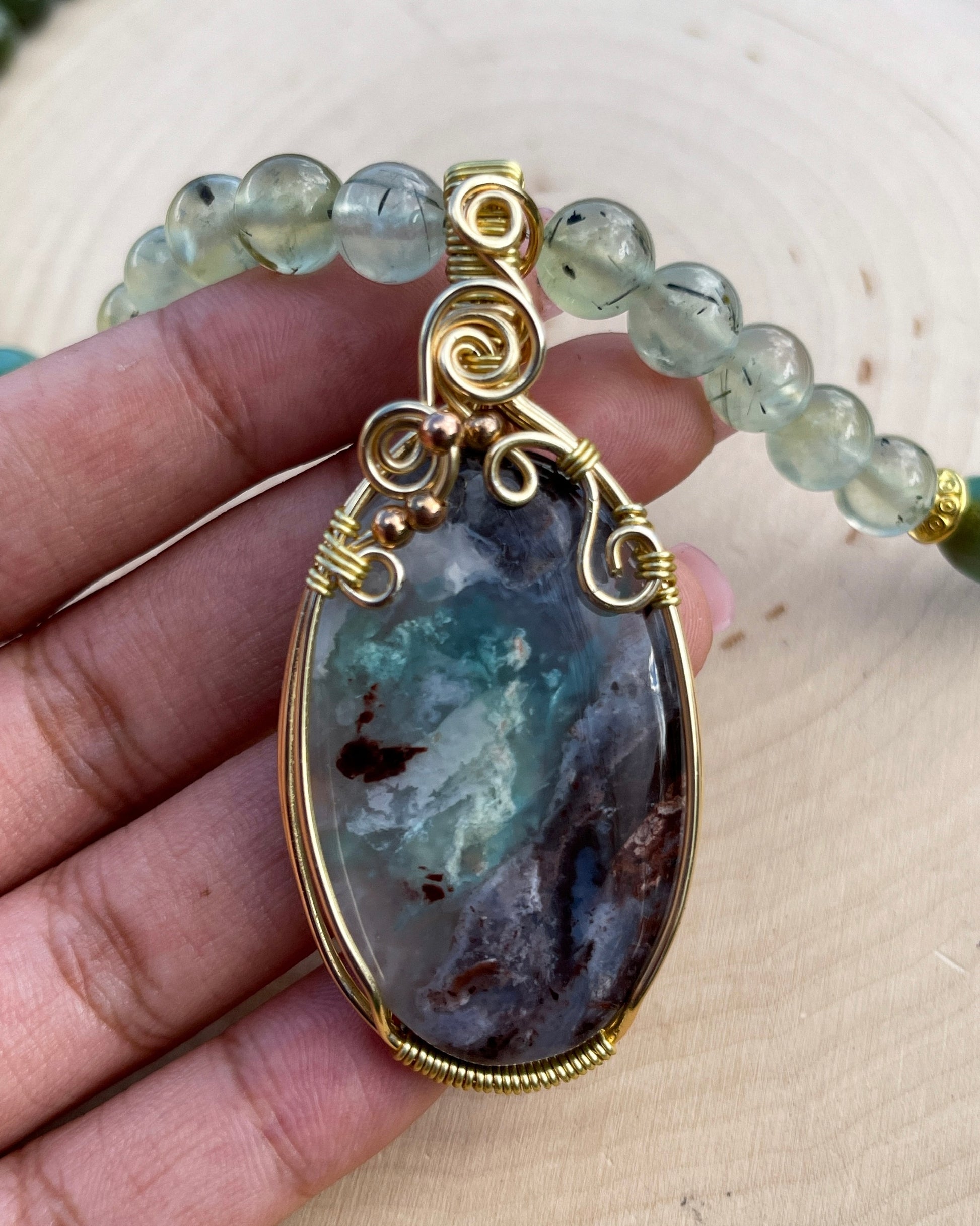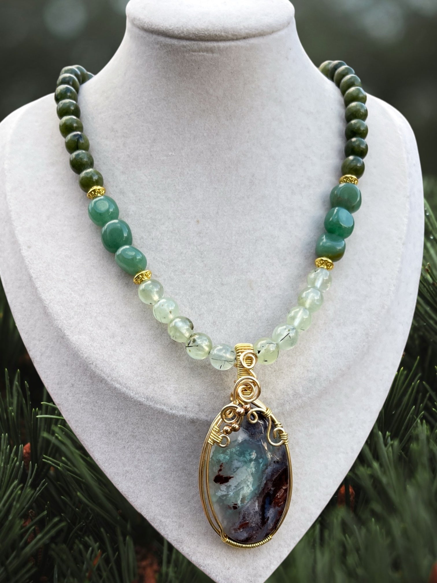 Evergreen • Aqua Chalcedony, Prehnite, Chinese Jade + Aventurine Necklace