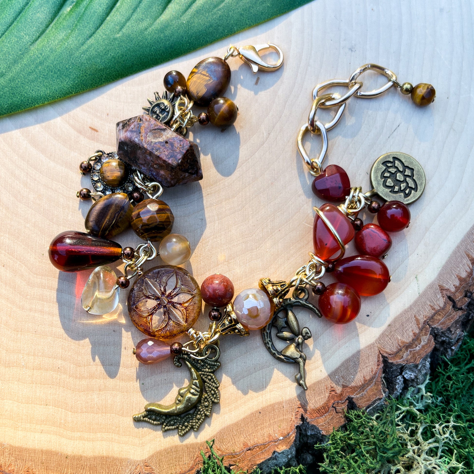 Carnelian, Red Jasper, Citrine, Peach Moonstone + Tigers Eye Charm Bracelet