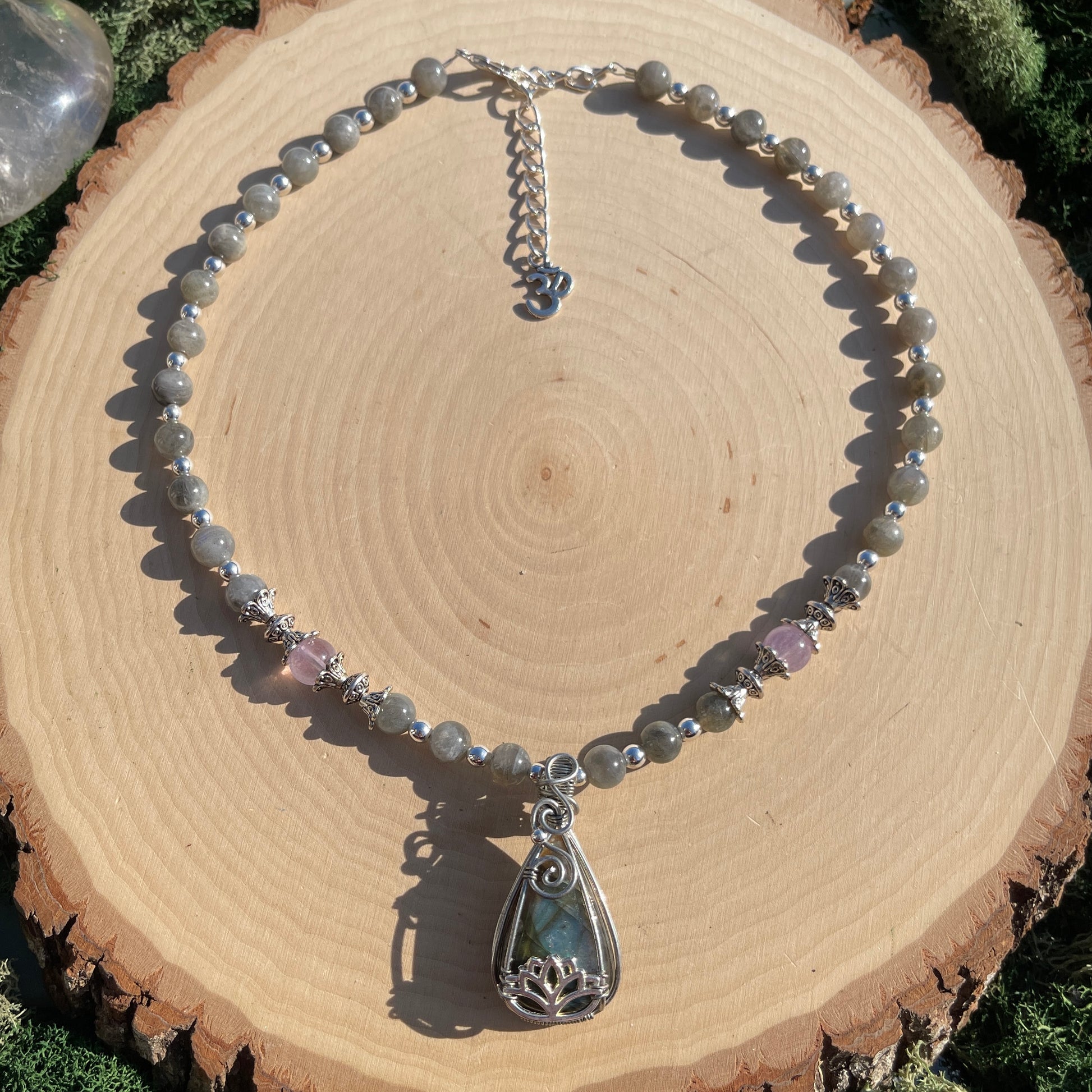 Shanti • Labradorite Lotus Flower Necklace