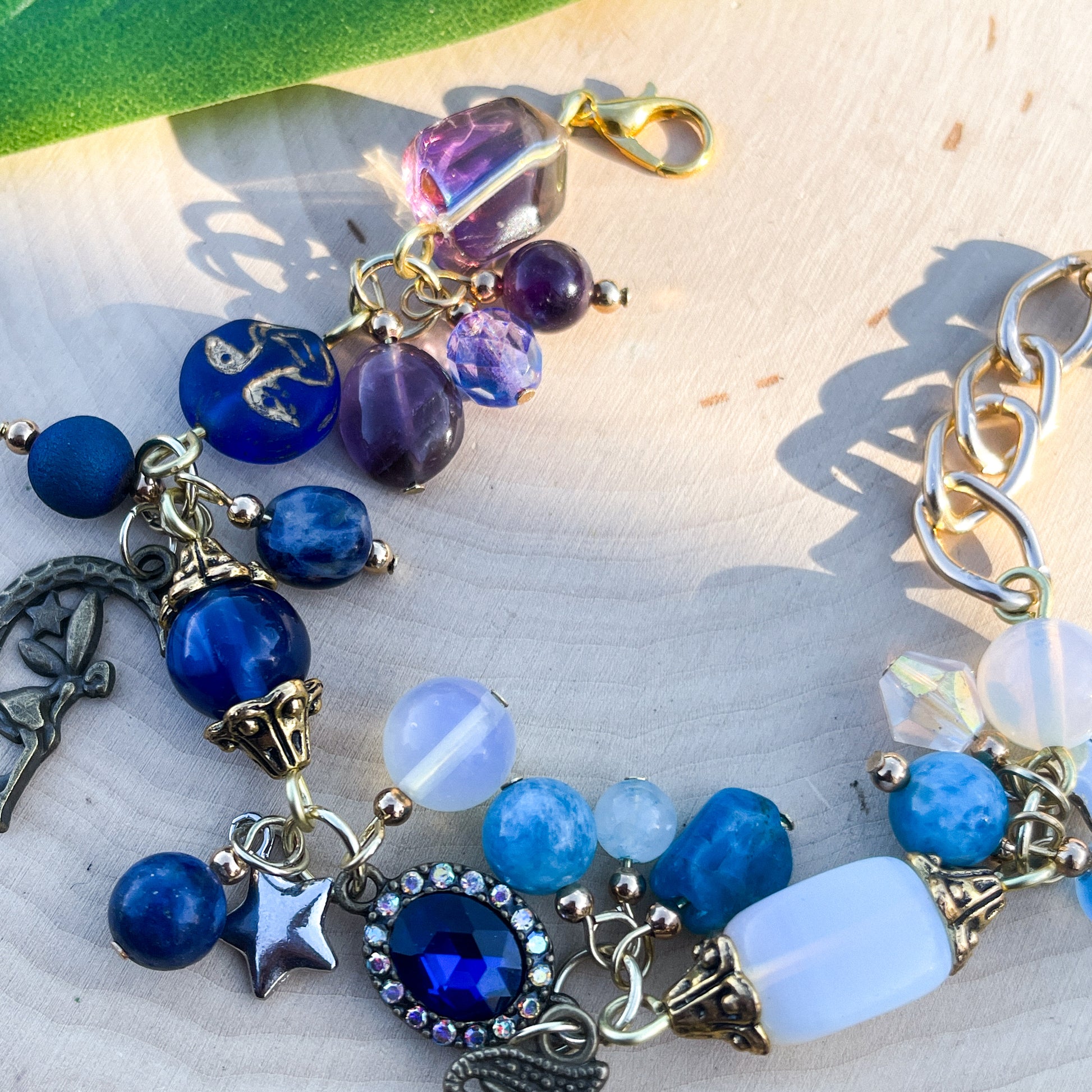 Opalite, Amethyst + Lapis Lazuli Whimsigoth Charm Bracelet 🩵