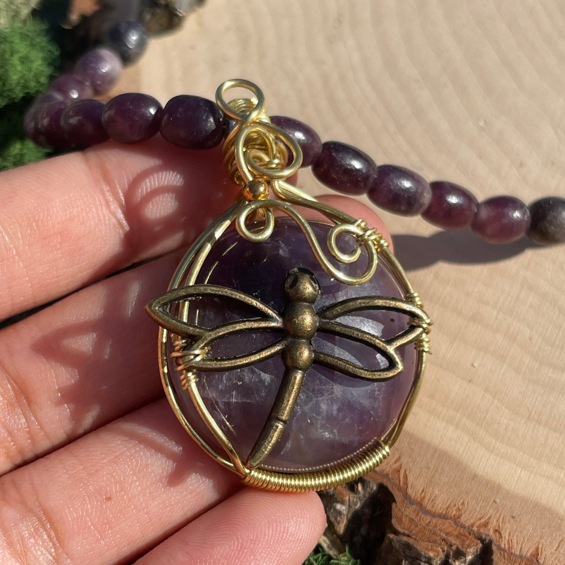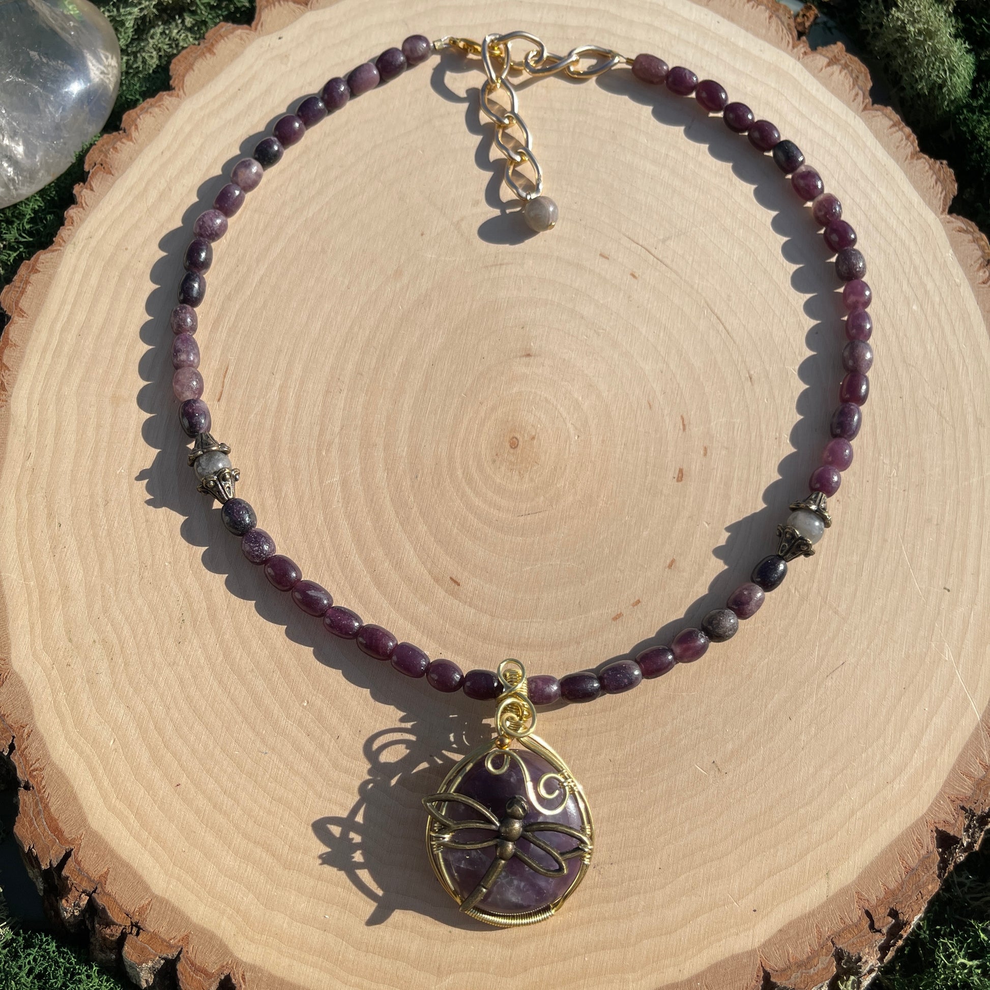 Mina • Lepidolite + Amethyst Dragonfly Necklace
